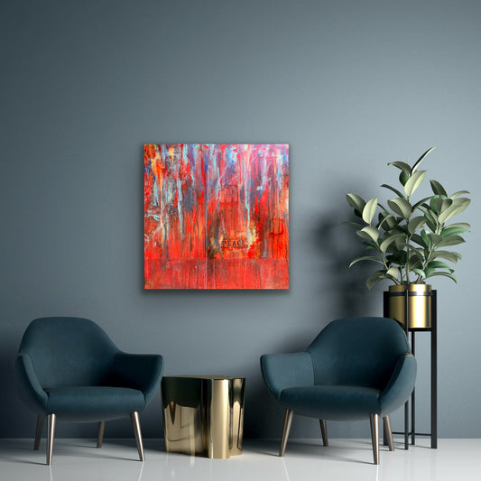 Surrender – Vibrant Abstract Acrylic Painting in Bold Reds and Blues