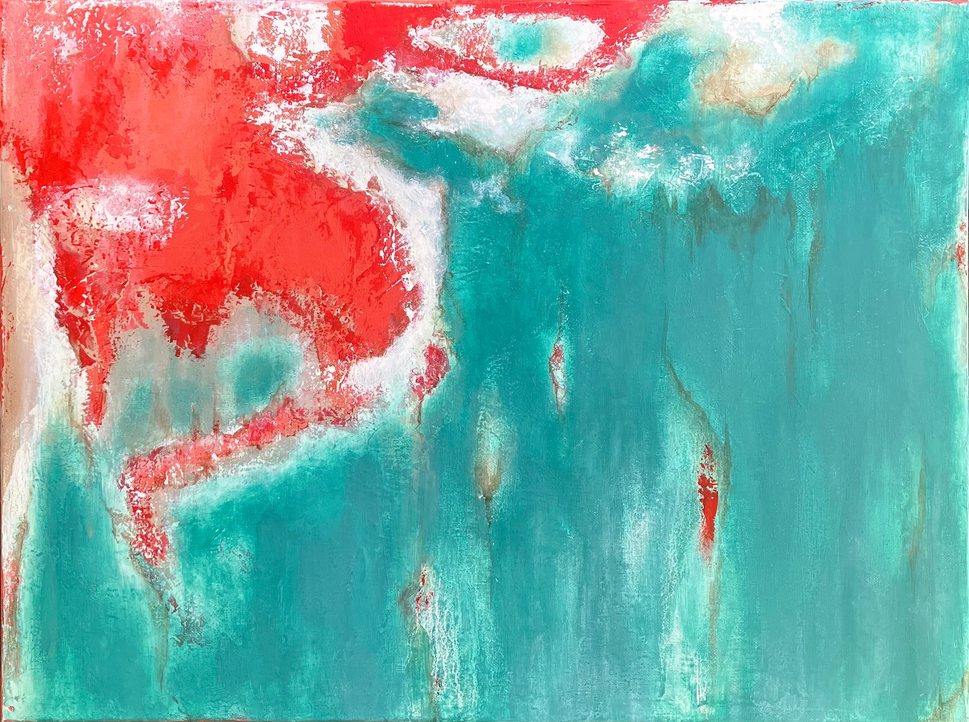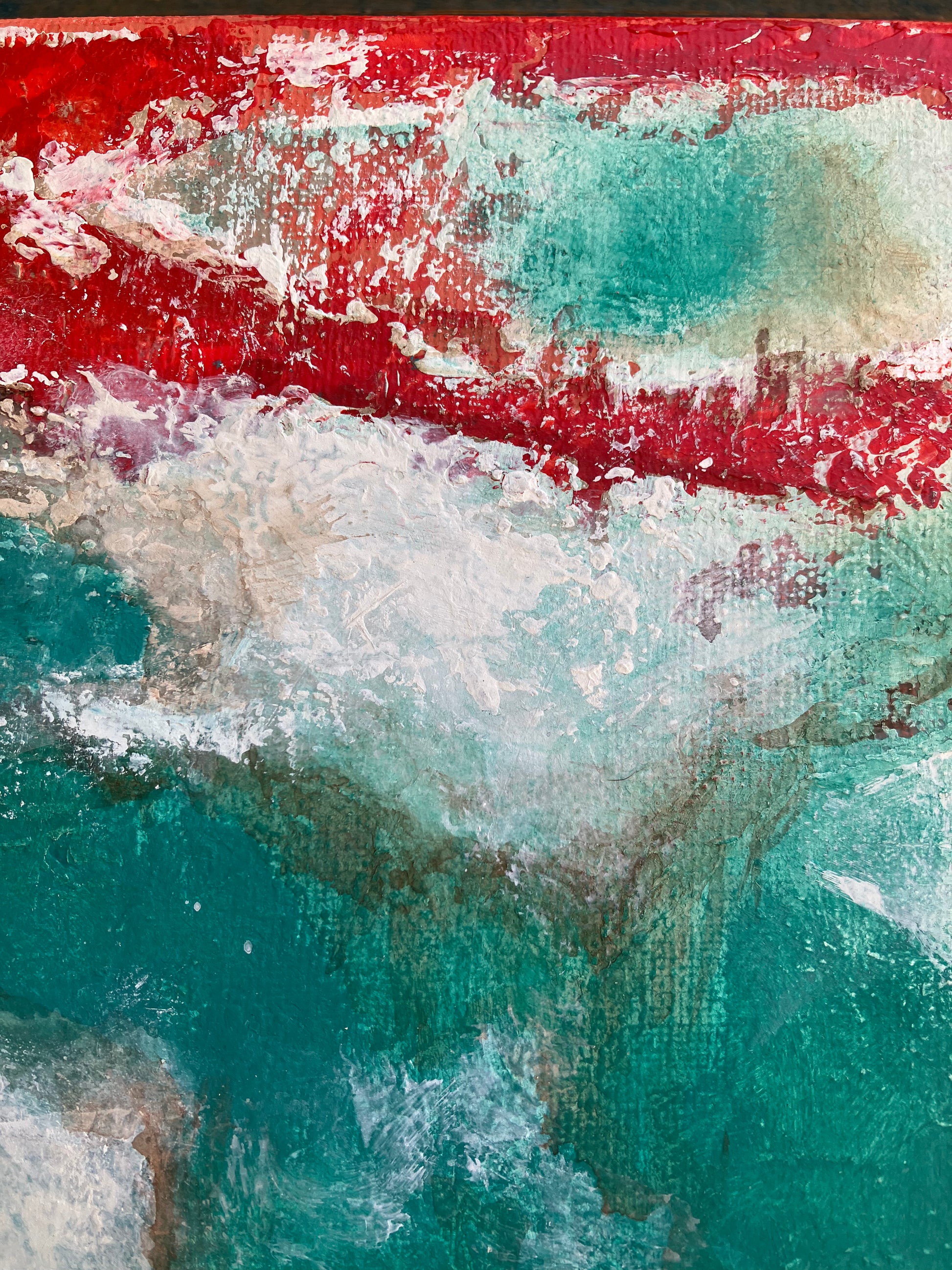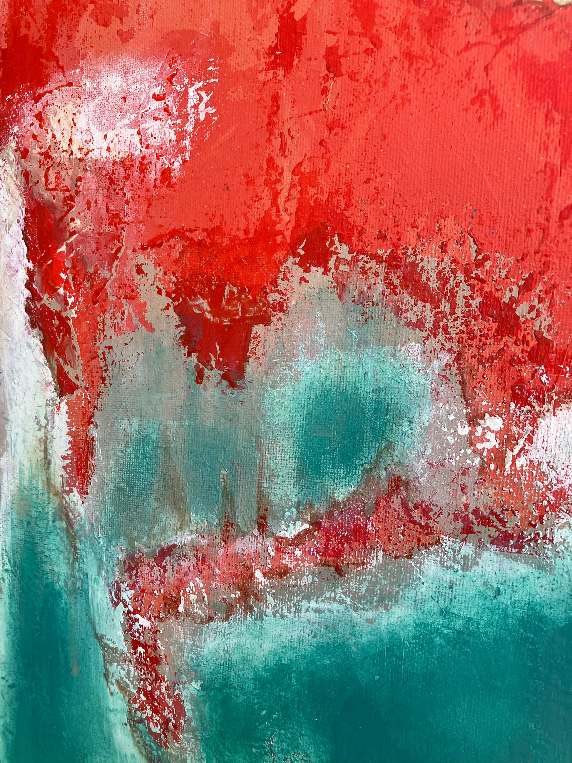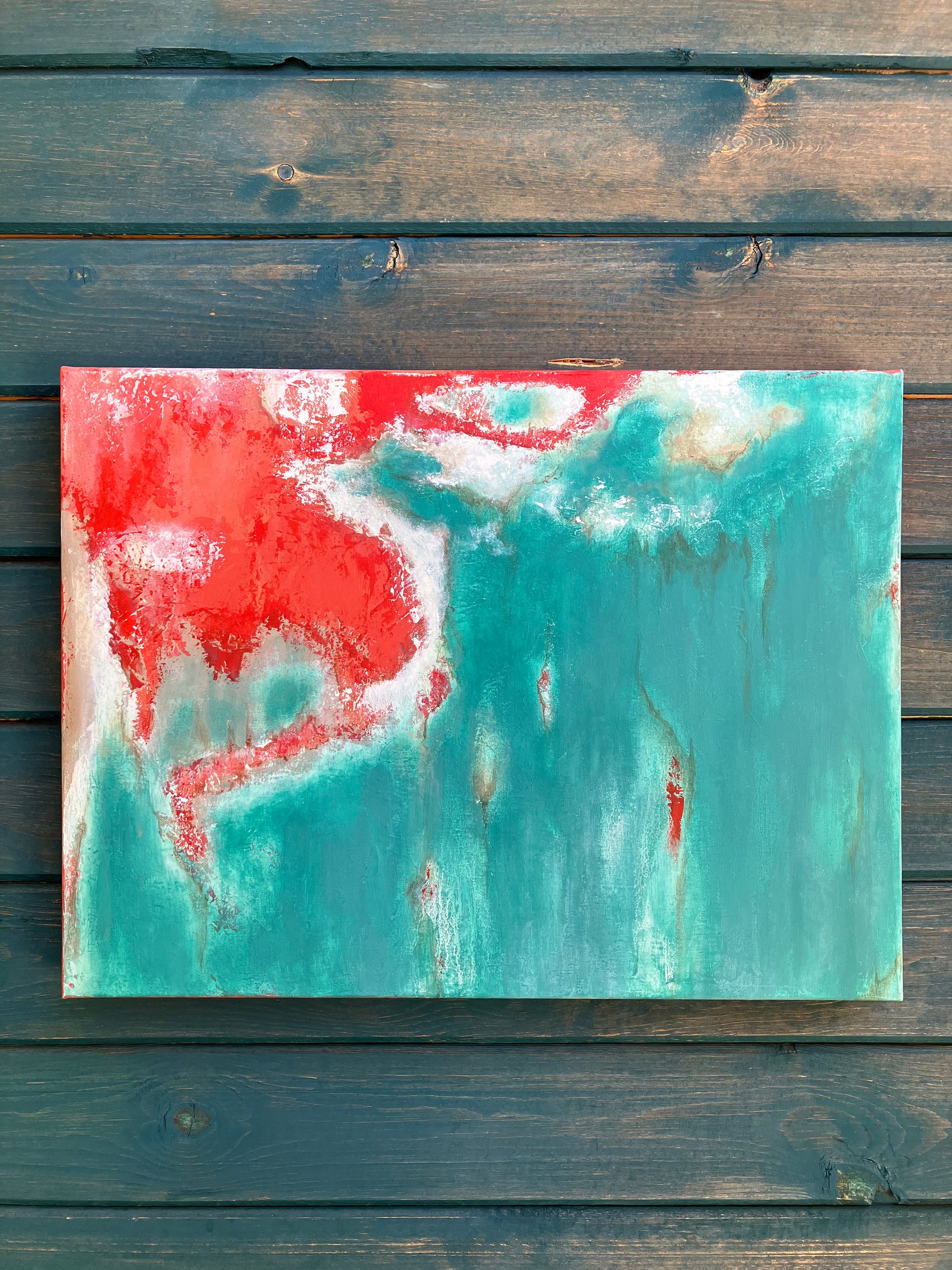 This vibrant abstract painting is sure to lift your spirits and add some fun, color and luxury to your interior and elevate your design. The texture of an old world wall was the inspiration behind this painting, giving it a well worn layered feel. The sides are painted and it is ready to hang without a frame.